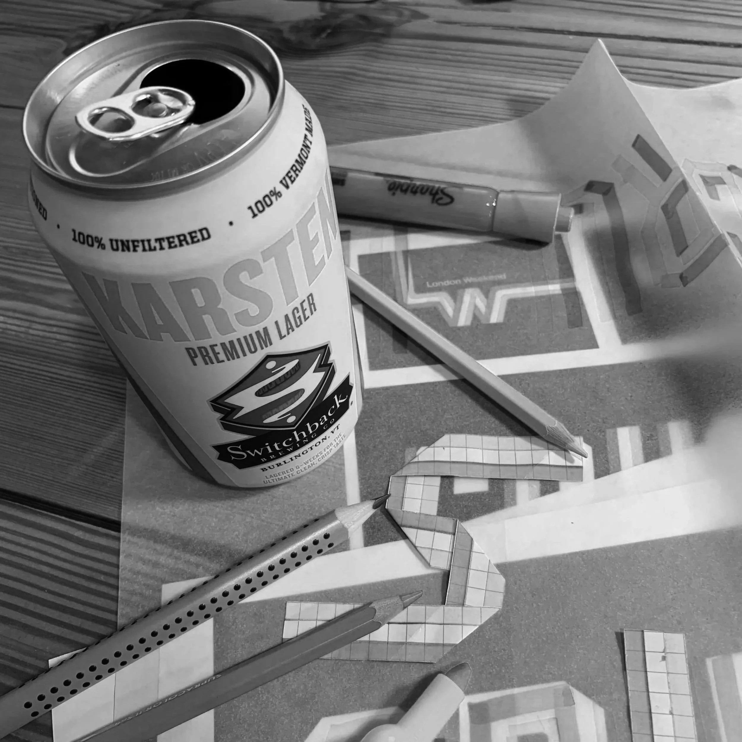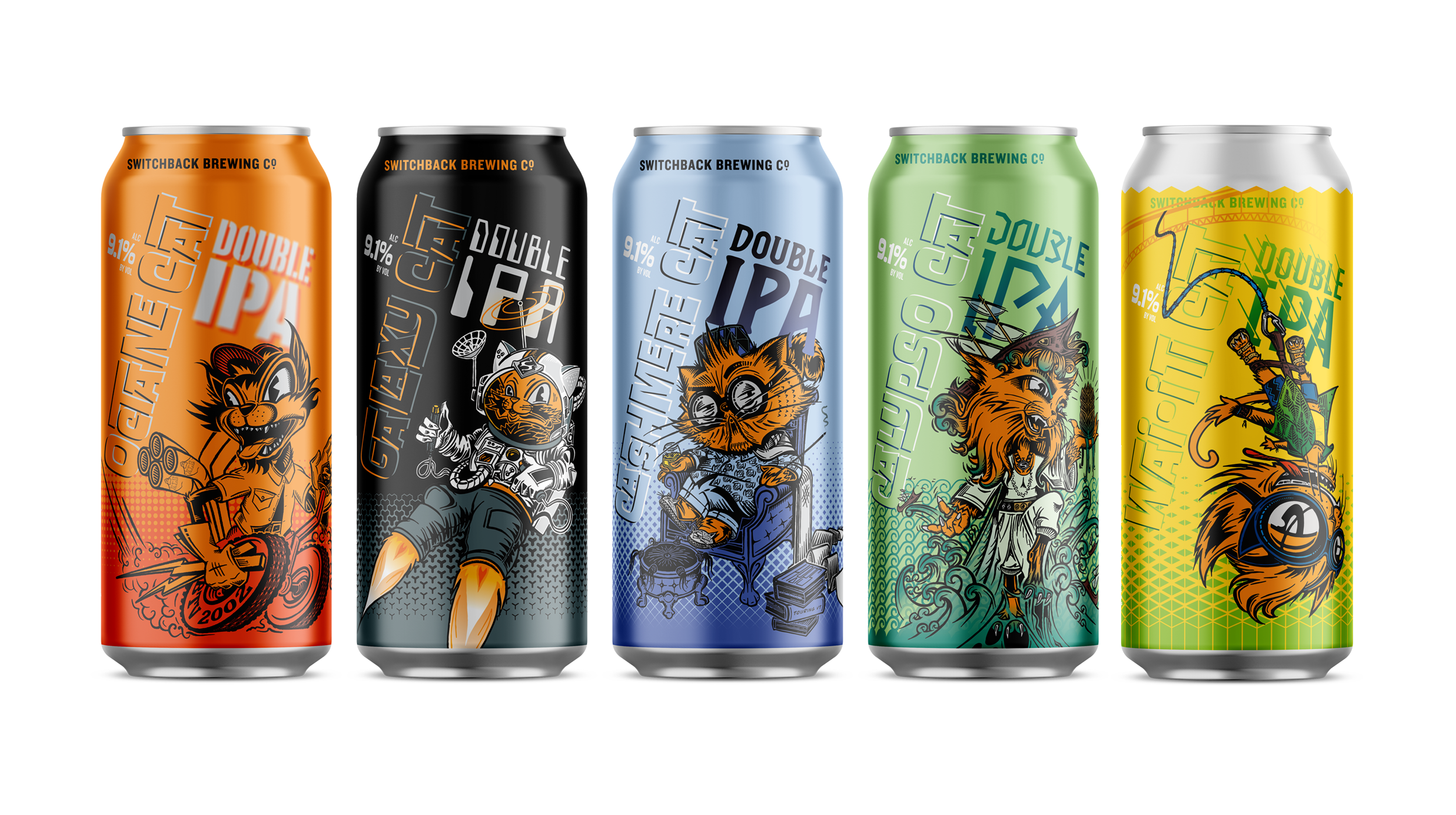 Since developing the company’s identity in 2002, Interrobang provided brand strategy and design for Switchback Brewing Co. products and select marketing materials through 2018. We created tap handles, coasters, pub glasses, bottle labels and case boxes, can designs, signage, banners, select branded apparel, and wraps for delivery vehicles of all sizes. Since 2018, our primary design services have been focused on core, seasonal, and brewery exclusive packaging for Switchback’s beers and spirits, successfully branding all their consumer offerings regardless of the industry’s twists and turns.